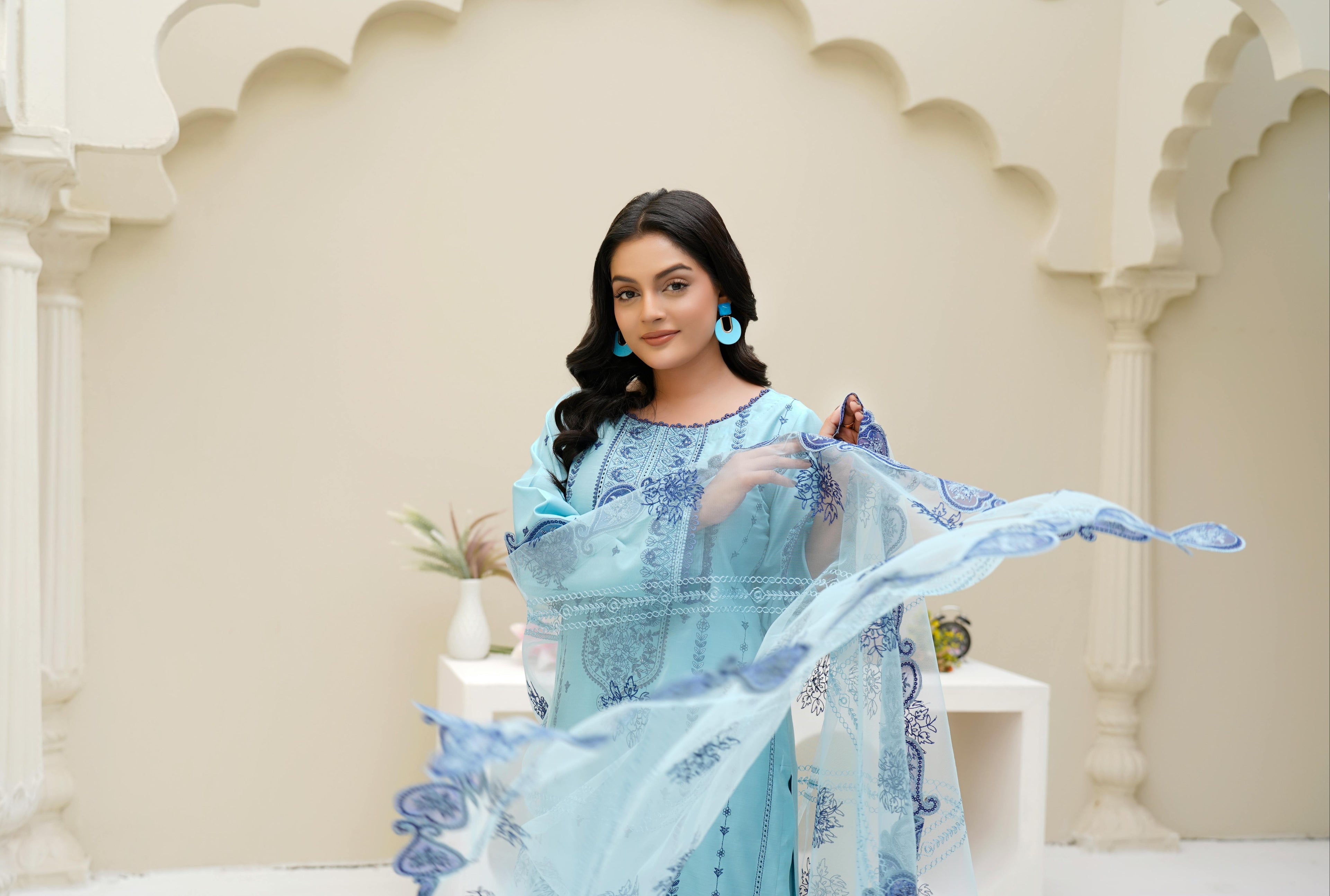 Maria.b 3 piece unstitched embroidered organza suit | d-2506-b
